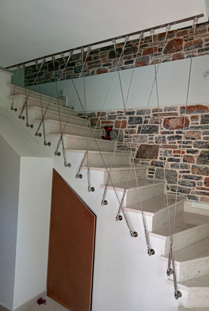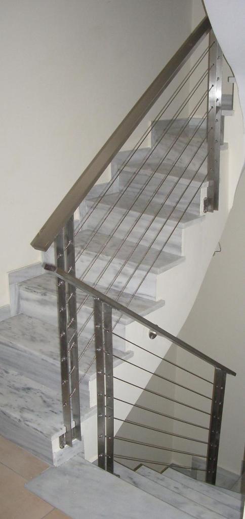 Ανοξείδωτα κάγκελα σκάλας με τη χρήση ανοξείδωτου συρματόσχοινου